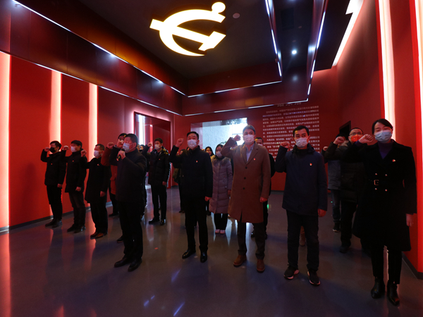在宣誓廳,全體黨員干部重溫入黨誓詞,錚錚誓言、響徹全場,彰顯了轉型發(fā)展中安徽鹽業(yè)人拼搏奮進、昂揚向上的精氣神。