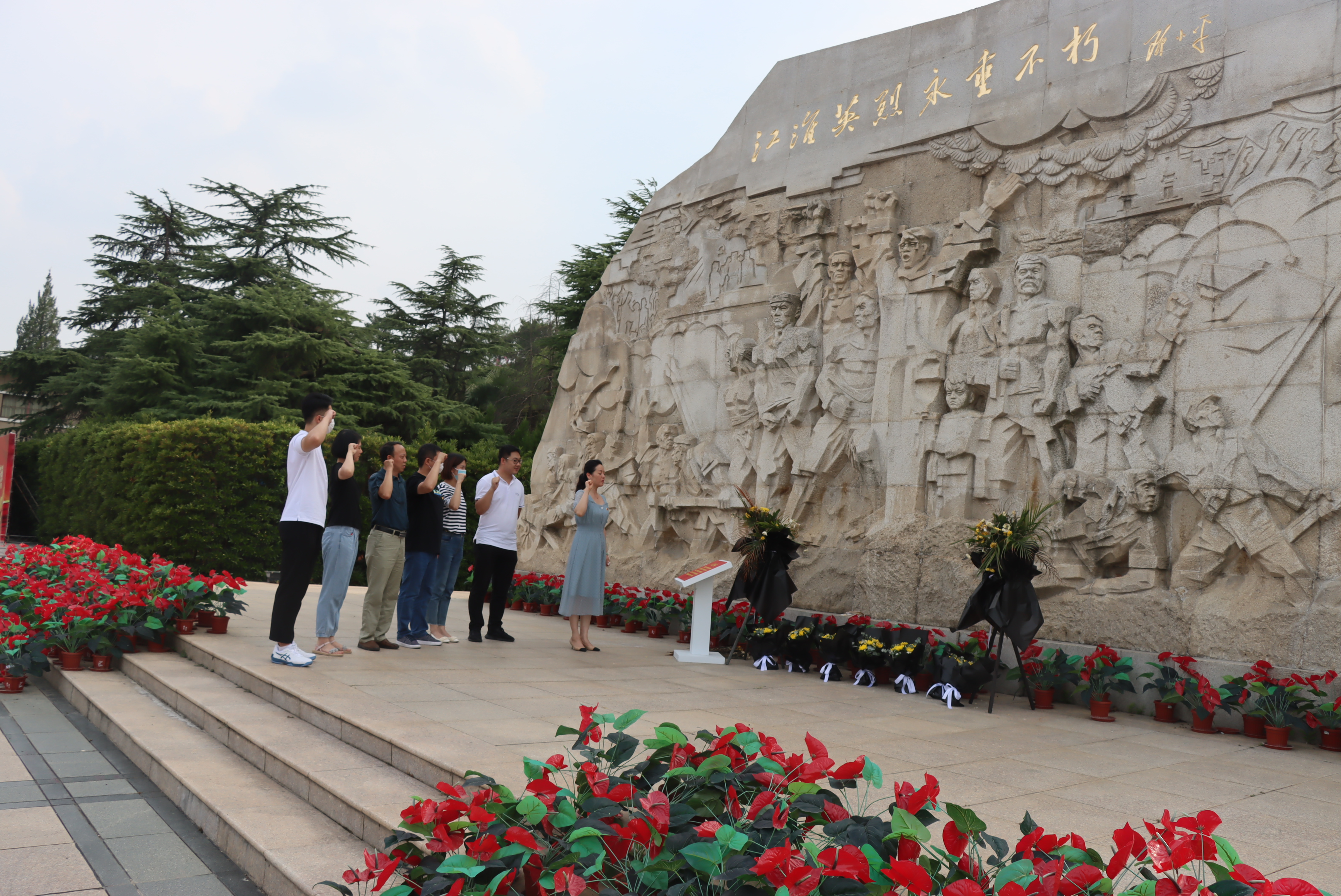 活動(dòng)中,大家沿著臺(tái)階拾級(jí)而上,在黨支部負(fù)責(zé)人葉敏的帶領(lǐng)下,全體黨員面對(duì)“江淮英烈永垂不朽”紀(jì)念碑重溫入黨誓詞,“我志愿加入中國(guó)共產(chǎn)黨,擁護(hù)黨的綱領(lǐng)……”每名黨員的誓言,聲音洪亮豪邁,字字鏗鏘有力,表達(dá)出為黨的事業(yè)奮斗終生的決心和忠心。隨后,大家在莊嚴(yán)肅穆的紀(jì)念碑前集體肅立,并敬獻(xiàn)鮮花,以表對(duì)烈士的敬意,寄托哀思。