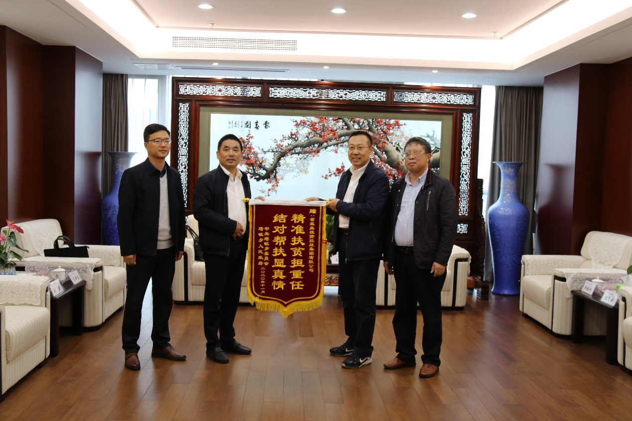 馬占文對塔畈鄉(xiāng)領(lǐng)導(dǎo)及駐村工作隊(duì)一行的到訪表示歡迎,并表示安徽鹽業(yè)將繼續(xù)支持塔畈鄉(xiāng)的脫貧攻堅(jiān)與鄉(xiāng)村振興事業(yè)。塔畈鄉(xiāng)領(lǐng)導(dǎo)對安徽鹽業(yè)集團(tuán)幾年來在對口幫扶西河村,以及為塔畈鄉(xiāng)脫貧攻堅(jiān)事業(yè)所作的重要貢獻(xiàn)表示衷心感謝,并代表潛山市委、市政府送上了感謝信與錦旗。