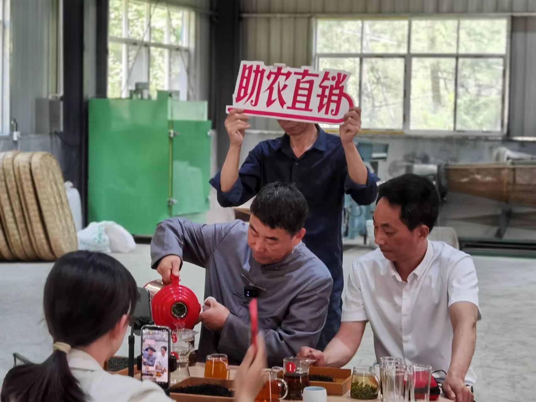 5月7日上午,安徽天方茶葉集團(tuán)董事長鄭孝和先生一行受邀來到西河村集體茶廠云谷茶廠,介紹了天方茶葉集團(tuán)助農(nóng)網(wǎng)上直銷茶葉方法和經(jīng)驗,并對云谷茶廠網(wǎng)上直銷茶葉進(jìn)行了培訓(xùn)和指導(dǎo)。上午11點,云谷茶廠室內(nèi)抖音直播銷售平臺正式上線,西河村駐村第一書記汪令富、村委負(fù)責(zé)人李運生同天方集團(tuán)董事長鄭孝和帶著西河村生產(chǎn)的江北高山紅茶—天柱紅走進(jìn)直播間,向網(wǎng)友們在線介紹了天柱紅的種植、采摘、品質(zhì)鑒別,經(jīng)過一個多小時的直播推介,銷售天柱紅紅茶近六千元。下午2點,網(wǎng)上直播助農(nóng)直銷茶葉活動改在茶園進(jìn)行,通過實地高山茶園宣傳推介云谷茶廠生產(chǎn)的優(yōu)質(zhì)天柱紅紅茶和天柱玄月綠茶。