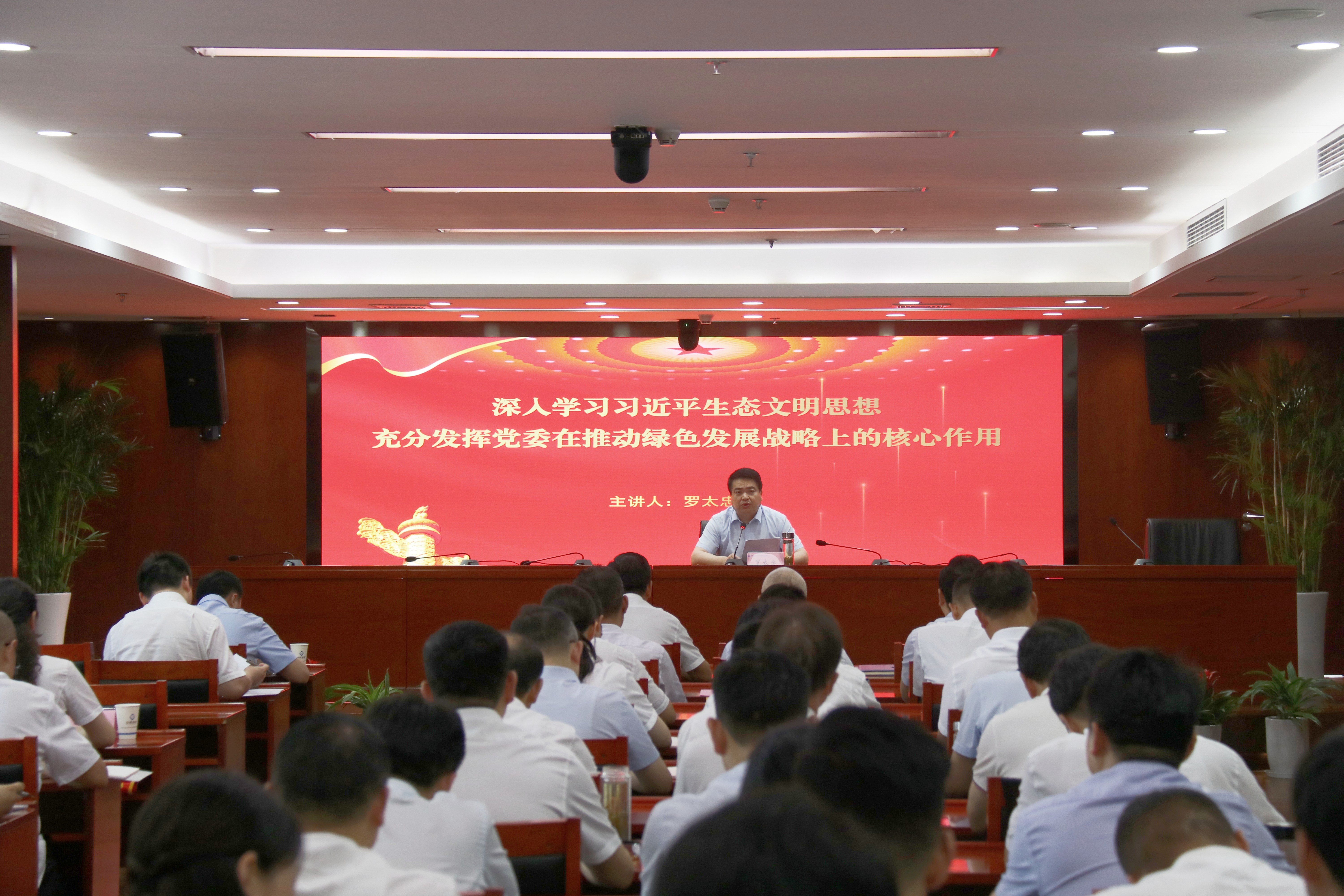 羅太忠以“深入學(xué)習(xí)習(xí)近平生態(tài)文明思想,充分發(fā)揮黨委在推動綠色發(fā)展戰(zhàn)略上的核心作用”為題作專題黨課報告,從深刻理解和把握習(xí)近平新時代中國特色社會主義思想所蘊(yùn)含的觀點(diǎn)立場方法、深刻理解和把握黨的二十大的戰(zhàn)略部署和目標(biāo)任務(wù)、深刻理解和把握習(xí)近平總書記關(guān)于本地區(qū)本部門本領(lǐng)域的重要講話、重要指示批示精神以及集團(tuán)公司未來發(fā)展的戰(zhàn)略和路徑等方面,詳細(xì)闡述了習(xí)近平新時代中國特色社會主義思想理論的精髓,明確了集團(tuán)公司轉(zhuǎn)型生態(tài)環(huán)境產(chǎn)業(yè)的具體路徑,進(jìn)一步統(tǒng)一了思想、凝聚了共識。羅太忠在報告中指出,黨的二十大將“生態(tài)環(huán)境保護(hù)發(fā)生歷史性、轉(zhuǎn)折性、全局性變化”作為新時代十年偉大變革之一,將“促進(jìn)人與自然和諧共生”作為中國式現(xiàn)代化本質(zhì)要求的重要內(nèi)容。要深刻領(lǐng)會習(xí)近平生態(tài)文明思想和習(xí)近平總書記關(guān)于綠色發(fā)展的重要論述,充分把握貫徹落實(shí)綠色發(fā)展戰(zhàn)略的重大意義,進(jìn)一步增強(qiáng)推動集團(tuán)公司轉(zhuǎn)型生態(tài)環(huán)境產(chǎn)業(yè)的使命感、責(zé)任感和緊迫感。要學(xué)深悟透習(xí)近平新時代中國特色社會主義思想,更好運(yùn)用貫穿其中的立場、觀點(diǎn)、方法指導(dǎo)推動工作,進(jìn)一步提升政治能力、思維能力、實(shí)踐能力,把習(xí)近平總書記關(guān)于推進(jìn)生態(tài)文明、建設(shè)美麗中國的指示精神落到實(shí)處。