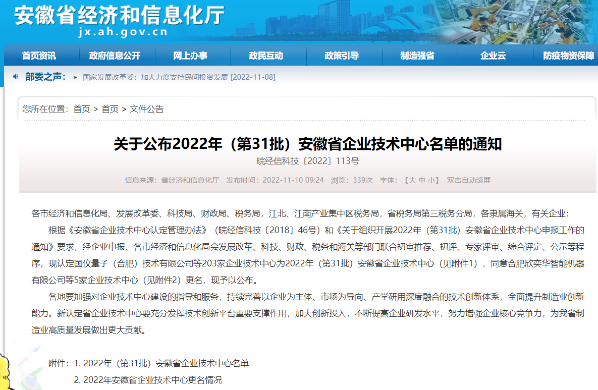 近日,安徽省經(jīng)濟和信息化廳公布了2022年安徽省企業(yè)技術中心(第31批)認定名單,安徽環(huán)境科技集團榮列其中,該榮譽的獲得彰顯了企業(yè)的綜合競爭實力以及顯著的技術創(chuàng)新能力。
