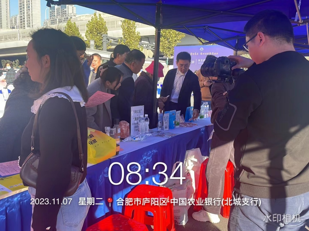 市公司工作人員攜帶展板、宣傳資料以及實物等,進行食品安全科普宣傳,展示不符合食品安全國家標準的“網(wǎng)紅鹽”和“臭腳鹽”,宣傳中鹽牌綠色低鈉鹽、綠色深井碘鹽等食鹽,為消費者推薦質(zhì)優(yōu)價廉的綠色食鹽,并發(fā)放控鹽勺和宣傳材料,推動合肥市民“健康換鹽”。