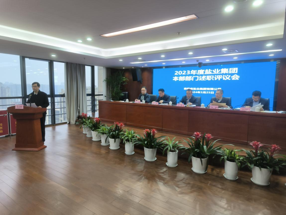 3月25日,鹽業(yè)集團召開2023年度本部部門述職評議會,省生態(tài)環(huán)境集團黨委委員、副總經(jīng)理,鹽業(yè)集團黨委書記、董事長王奇出席會議并講話。鹽業(yè)集團黨委副書記、總經(jīng)理、董事宇豐主持會議。