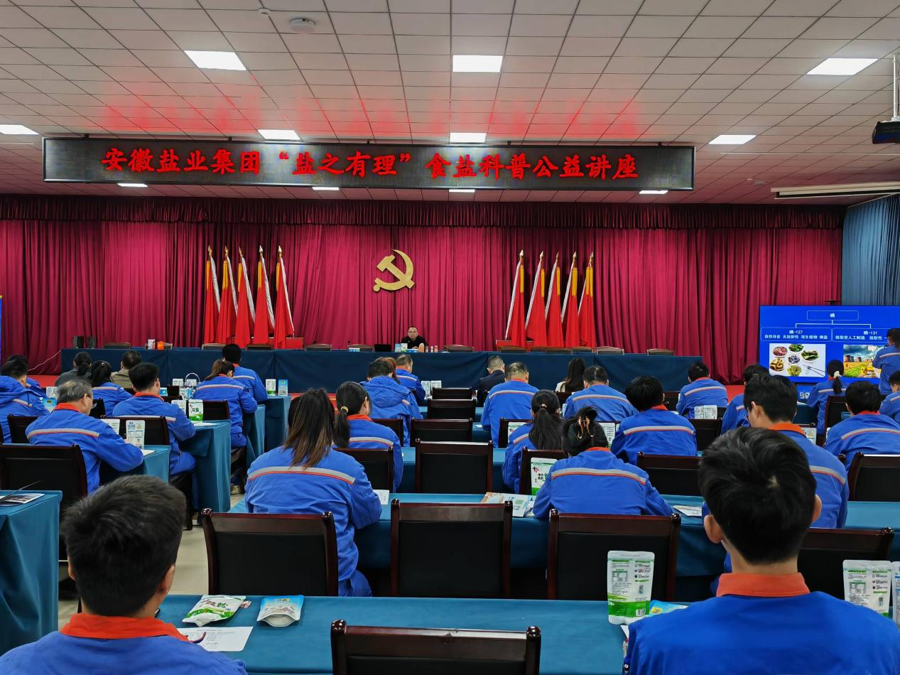 為傳播科學(xué)用鹽理念、助力“健康中國”行動,倡導(dǎo)減鹽低鈉的合理膳食習(xí)慣,3月13日,省鹽業(yè)集團(tuán)黨委副書記、工會主席李江,副總經(jīng)理江南帶領(lǐng)科普團(tuán)隊前往安徽華塑股份有限公司,開展“‘鹽’之有理”食鹽科普公益講座。安徽華塑股份有限公司黨委副書記、總經(jīng)理段舒寶、工會主席范永瑯及60余名員工共同參與活動。