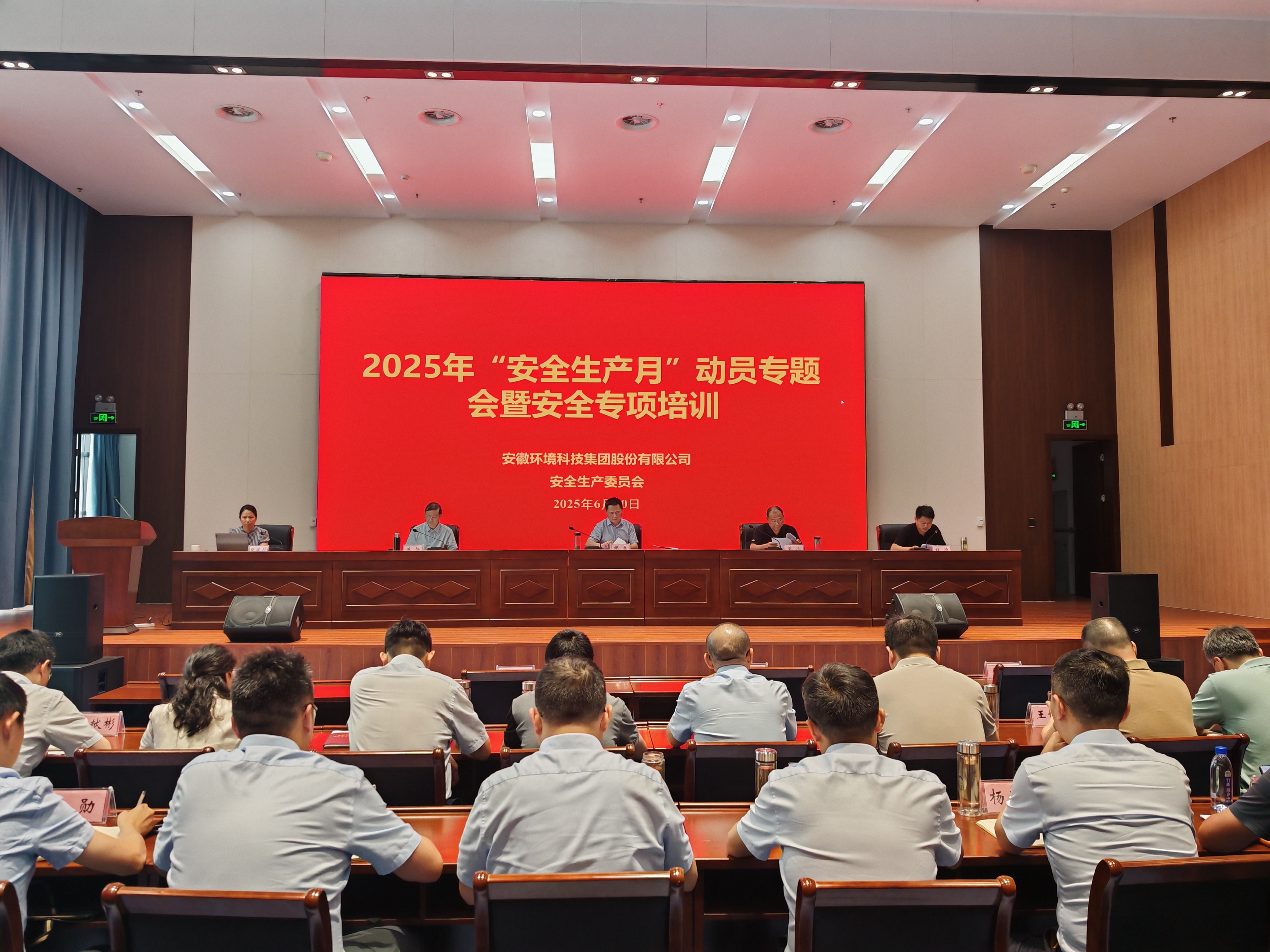 為深入貫徹落實(shí)國家關(guān)于安全生產(chǎn)工作的決策部署,強(qiáng)化全員安全意識(shí),壓實(shí)安全責(zé)任鏈條,安徽環(huán)境科技集團(tuán)于6月10日下午隆重召開2025年“安全生產(chǎn)月”動(dòng)員暨安全專項(xiàng)培訓(xùn)會(huì),正式拉開以“人人講安全、個(gè)個(gè)會(huì)應(yīng)急——查找身邊安全隱患”為主題的安全生產(chǎn)月活動(dòng)序幕。集團(tuán)領(lǐng)導(dǎo)班子成員、各部門、各子(項(xiàng)目)公司主要負(fù)責(zé)人、分管安全領(lǐng)導(dǎo)及專兼職安全管理人員等百余人現(xiàn)場(chǎng)參會(huì)。